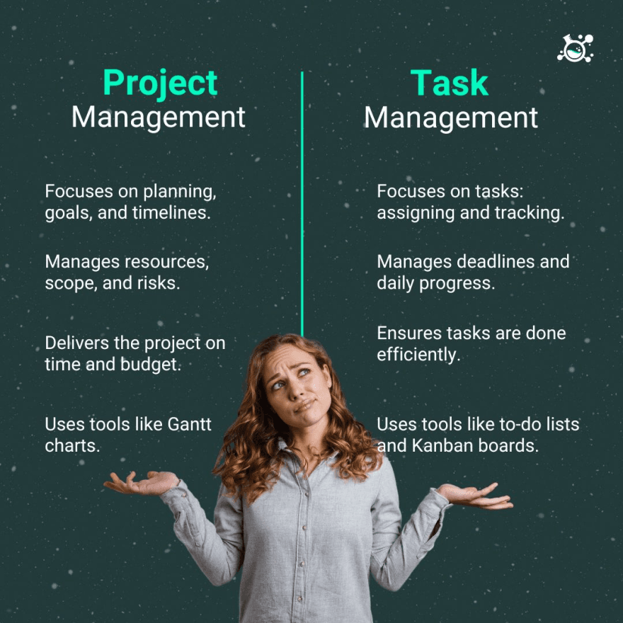 Project management and task management are both essential components of effective project execution, but they serve different purposes. Project management focuses on the overall planning, coordination, and control of a project. It involves defining project goals, creating a project plan, allocating resources, managing budgets, and ensuring that the project is delivered on time and within scope. On the other hand, task management is more granular and focuses on the execution of individual tasks within a project. It involves assigning tasks to team members, setting deadlines, tracking progress, and ensuring that tasks are completed efficiently. Both project management and task management are vital for project success, and effective coordination between the two is key to achieving project goals on time and within budget.